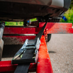 - The product uses a tensioner with a breaking load of 5000kg and J-hooks with a breaking load of 5000kg.